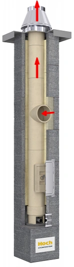 Cosul prefabricat universal Hoch® este potrivit pentru combustibili solizi, lichizi si gazosi, incluzand lemn, carbune, gaz, petrol si bricheta.