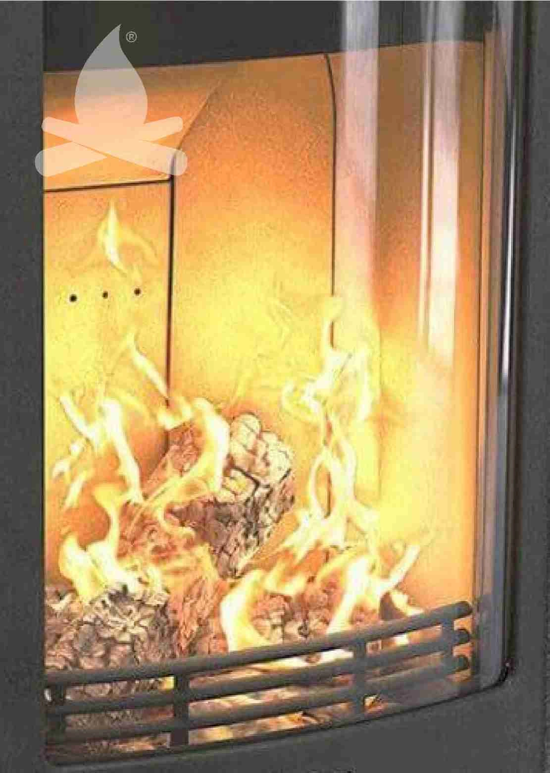 Placile de vermiculita izoleaza camera de ardere marind temperatura de ardere obtinand astfel un proces de ardere mult mai curat si o utilizare maxima a lemnului.