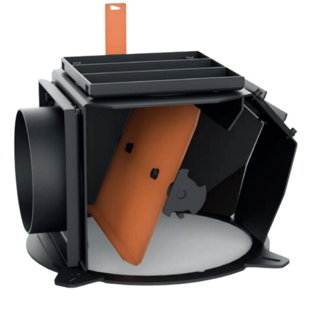 Iesirea gazelor de ardere din semineu poate fi directionata spre spate (Ø180 mm) sau spre partea de sus.