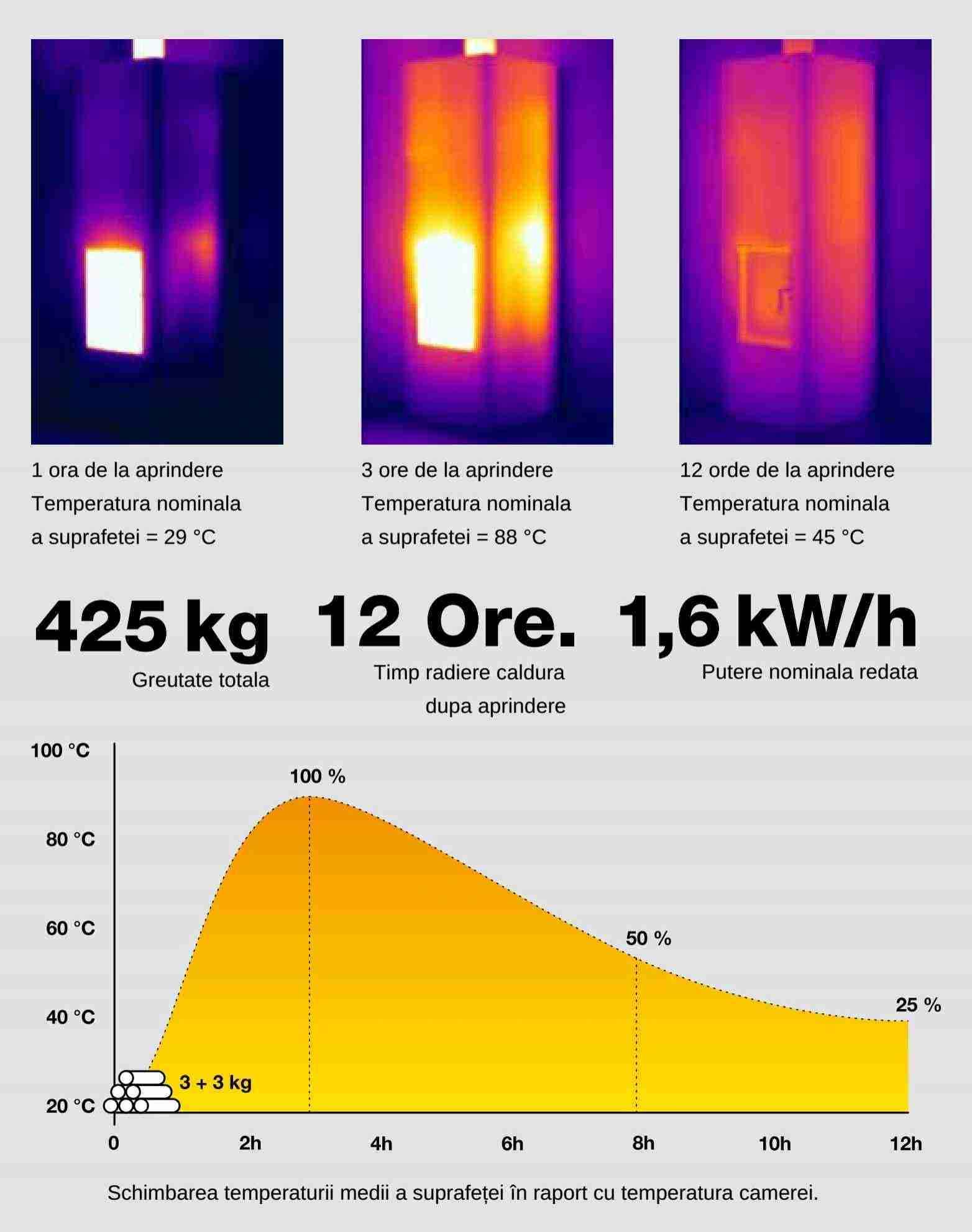Durata de eliberare a caldurii: intre 5 si 12 ore, in functie de modelul ales si configuratia sistemului.